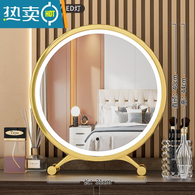 敬平大号台式桌面led带灯补光梳妆圆镜子宿舍网红少女心ins风便携式用镜 日落金[高清镜面]40cm-小仙女 款❤️