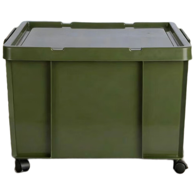 戴劲塑料储物箱加厚收纳箱塑料整理箱带盖新军绿色带轮710*480*380mm