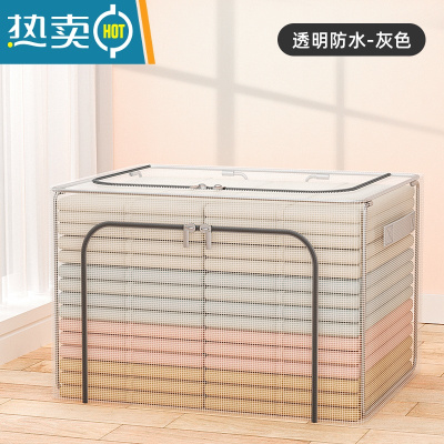 敬平收纳箱透明可折叠家用钢架百纳箱衣柜储存整理大容量衣服收纳器