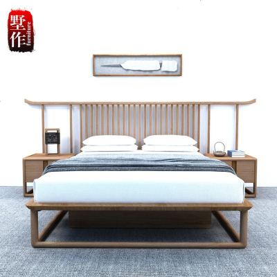 新中式实木床卧室架子床1.8米双人床酒店别墅民宿样板房家具定制