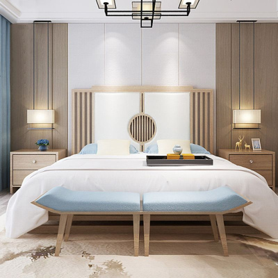 新中式实木床卧室定制布艺婚床现代简约样板房酒店双人床家具