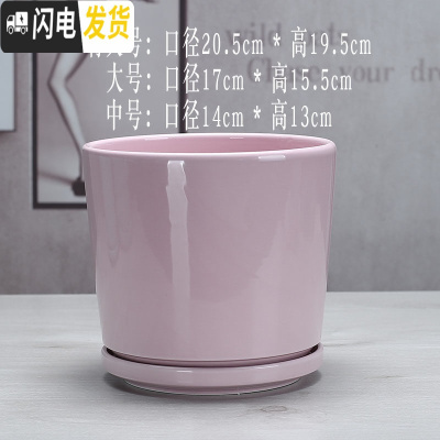 三维工匠花盆陶瓷大号带托盘家用个性特大号简约创意绿萝多肉花盆 一支粉梅三件套 大花盆容器