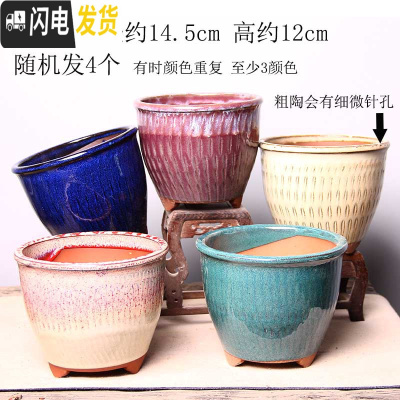 三维工匠多肉花盆大号多肉老桩盆肉肉花盆小号透气创意陶瓷粗陶简约陶罐 4个1819 中等花盆容器