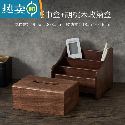 敬平纸抽盒新中式胡桃木实木轻奢风纸巾盒客厅家用餐桌茶几木质抽纸盒 胡桃木纸巾盒+胡桃木收纳盒
