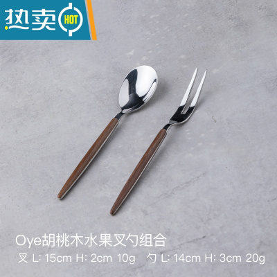敬平胡桃木叉子勺子高颜值304不锈钢水果叉甜品勺水果签可爱风 oye胡桃木水果叉勺组合