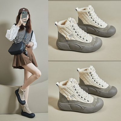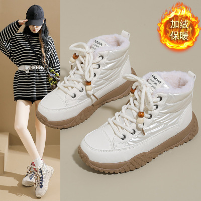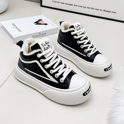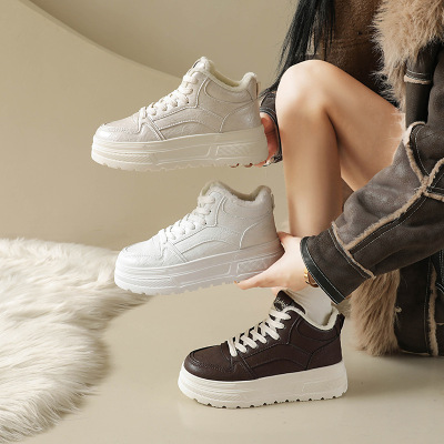 高帮鞋女冬季新款加绒百搭学生棉鞋增高松糕休闲鞋子