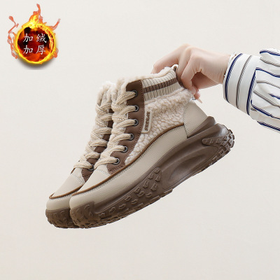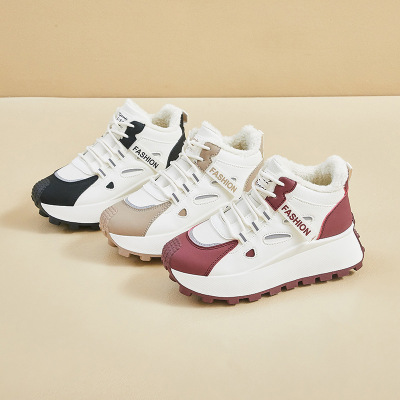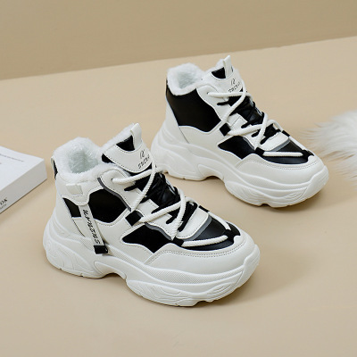 高帮鞋女冬季新款加绒百搭学生棉鞋增高松糕休闲老爹鞋