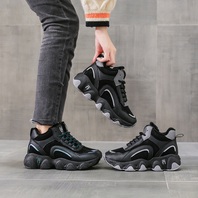 加绒高帮老爹鞋女冬季新款韩版保暖运动鞋学生ins棉鞋女