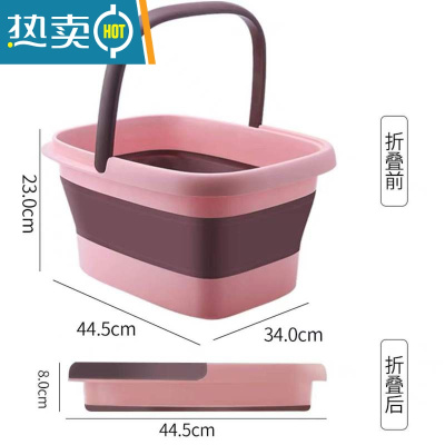 敬平折叠泡脚桶足浴水桶便携家用加厚洗车长方形大号塑料拖布桶洗脚盆 粉色大号13L[可折叠]