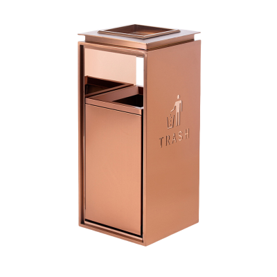 琅柯 大理石不锈钢垃圾桶 立式带烟灰缸 玫瑰金黑石