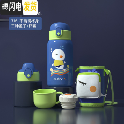 三维工匠儿童保温杯带吸管两用男女童幼儿园宝宝水杯小学生便携不锈钢杯子 蓝色考拉儿童保温杯480