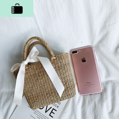 女童包包编织包蝴蝶结手提包公主时尚包可爱小孩儿童度假编包夏NEW LAKE 卡其色+蝴蝶结女士单肩包