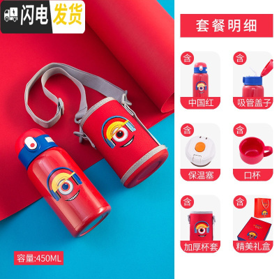 三维工匠儿童保温杯带吸管防摔两用水杯女童男幼儿园宝宝小学生不锈钢水壶 中国红450(级316+吸嘴+杯刷+吸管刷)