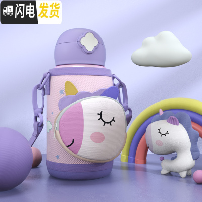 三维工匠口袋圣诞儿童保温杯带吸管两用水杯男女童幼儿园小学生水壶 316三盖版-口袋独角兽+吸嘴+杯刷+吸管刷