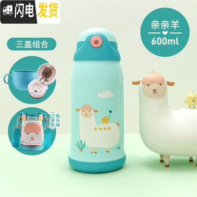 三维工匠儿童保温杯带吸管两用水壶小学生男便携防摔幼儿园宝宝女童水杯子 [保温杯+口袋杯套]亲亲羊600◆一杯三盖
