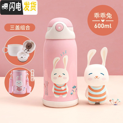 三维工匠儿童保温杯带吸管两用水壶小学生男便携防摔幼儿园宝宝女童水杯子 [保温杯+基础杯套]乖乖兔600★一杯三盖