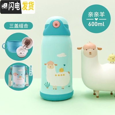 三维工匠儿童保温杯带吸管两用水壶小学生男便携防摔幼儿园宝宝女童水杯子 [保温杯+基础杯套]亲亲羊600★一杯三盖