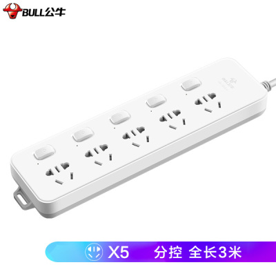 公牛(BULL) 新国标GN-312 5位分控全长3米 超功率保护插座/插排/排插/接线板/拖线板(单位:件)