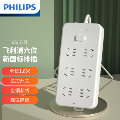 飞利浦(PHILIPS)新国标安全插座6位总控 1.8米儿童保护门 插线板/插排/排插/接线板/拖线板SPB2161WA