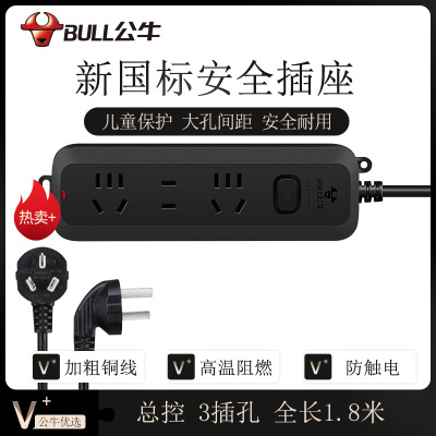 公牛(BULL)新国标插座 插线板/插排/排插/接线板/拖线板 黑色质感3位总控全长1.8米 GN-B8120H