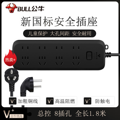 公牛(BULL)新国标插座/插线板/插排/排插/接线板/拖线板 黑色质感 8位总控全长1.8米 GN-B8440H