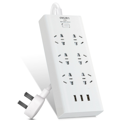 得力(deli)18284接线板 插座/插线板/插排/排插/usb接口/分控开关/总控开关 6孔+3USB孔2米 白色