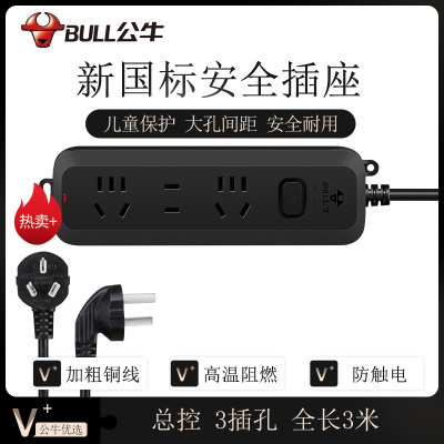 公牛(BULL) 超功率过载保护 新国标/插线板/插排/排插/接线板 5位分控全长3米(新国标)GN-312