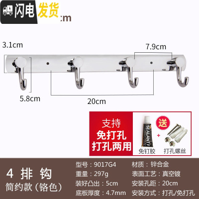 三维工匠女装服装店试衣间挂钩排钩免打孔壁挂墙壁更衣室衣帽钩金色挂衣钩 铬色4排钩-简约款(打孔/免打孔两用)