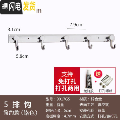 三维工匠女装服装店试衣间挂钩排钩免打孔壁挂墙壁更衣室衣帽钩金色挂衣钩 铬色5排钩-简约款(打孔/免打孔两用)