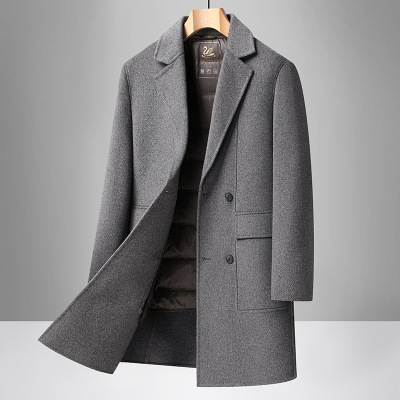 双面呢羊毛大衣拆卸羽绒内胆冬季新款青年男士双排扣商务休闲外套