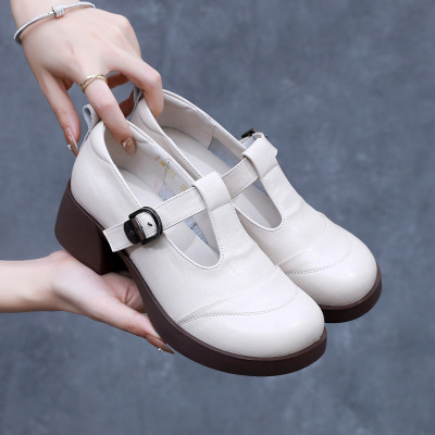 真皮皮鞋厚底软皮粗跟中跟英伦风复古软底小皮鞋四季中年妈妈