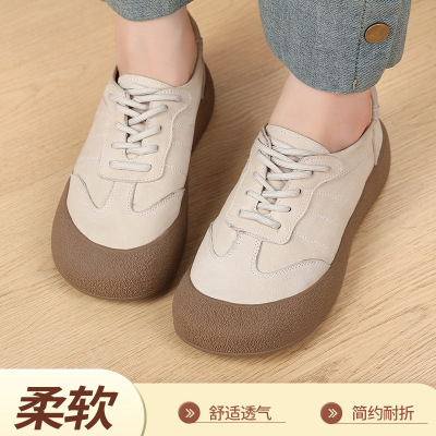 秋季新款舒适厚底系带丑萌休闲板鞋软底复古单鞋真皮四季女鞋