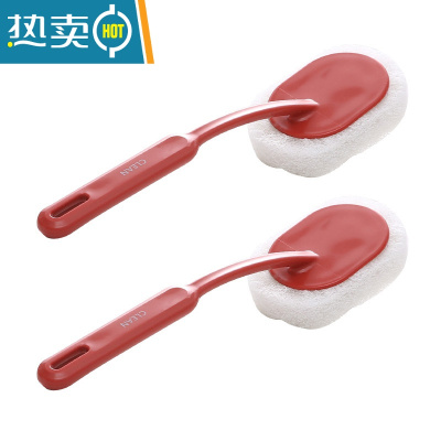 敬平长柄百洁布海绵刷卫生间浴缸刷长柄刷子浴室地板清洁刷厨房海绵擦 两个装-暗红色[收藏加购送粘钩 享优先发货]