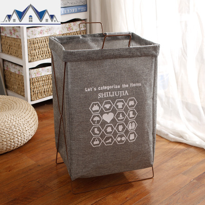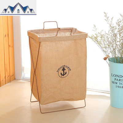 铁艺支架折叠脏衣篓洗衣篮大号棉麻防水脏衣篮玩具衣物家居收纳筐 三维工匠收纳篮
