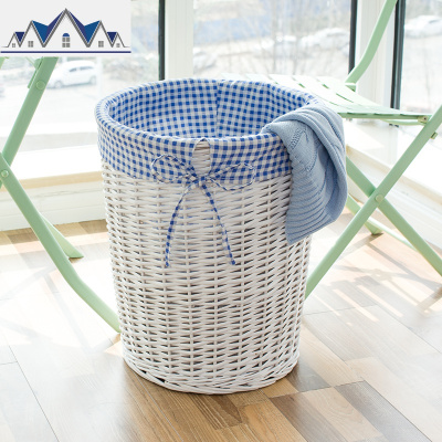 藤编柳编脏衣篮带盖圆形收纳筐洗衣篓火锅店衣物玩具收纳桶编织篮 三维工匠收纳篮