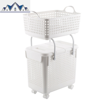 北欧脏衣篮带盖洗衣篮家用脏衣篓脏衣服收纳筐收纳篮带轮蓝塑料桶 三维工匠