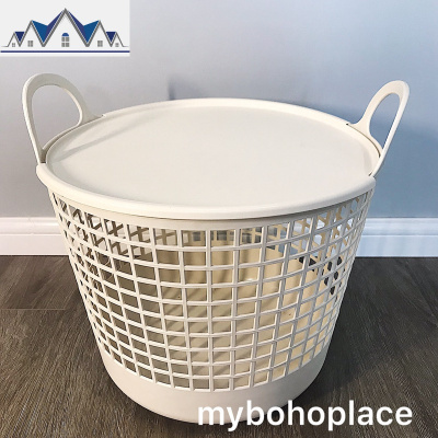 北欧简约ins米白色带盖带把手杂物收纳桶 洗衣篮 三维工匠收纳篮