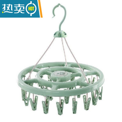 敬平凉衣架墙防盗网晾衣器挂钩金属挂钩多夹子多功能晾内衣裤晒袜架 绿色24夹 1个晒衣篮
