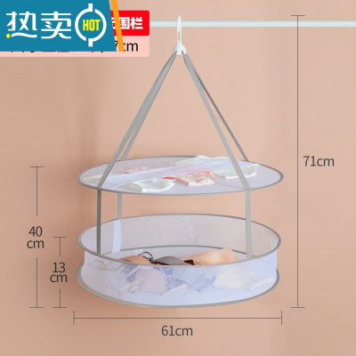 敬平多功能晒衣网晒袜子内衣晒衣篮双层便携可折叠衣架家用旅行晾衣网 直径61cm一层 升级加厚结实款