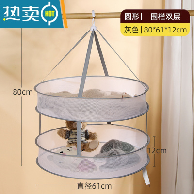 敬平晾衣网晒衣篮家用晾晒毛衣袜子器双层平铺网兜防变形衣篓 圆形有围双层φ61灰色