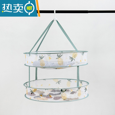 敬平晒衣篮家用衫的防变形网兜蓝双层毛衣专用平铺架凉晾衣服器 61双层双围菠萝 晒衣篮
