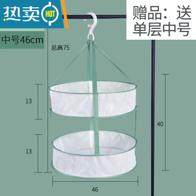 敬平晾晒内裤私密物件网兜多层晾晒网干货防掉晒衣篮双围栏吊篮器 N14-绿边中号单层(直径46cm)