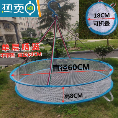 敬平折叠晒网晒衣蓝晒干菜晾晒器晒毛线毛衣网防蝇袜子新款家用网兜 单层直径60cm不带盖晒衣篮