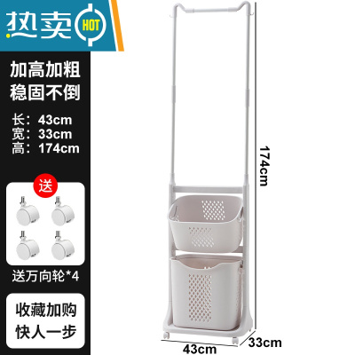 敬平落地次净挂衣架带轮浴室收纳卧室脏衣篮篓隔夜衣帽移动晾衣架置物 D款[挂衣&放脏衣&小物收纳篮]移动衣帽架+脏衣篮+置