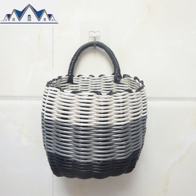 单把手小挂篮塑料编织筐洗澡蓝卫生间篮迷你小篮子浴室手提收纳筐 三维工匠收纳篮