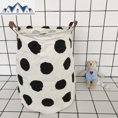 韩风chic简约牛奶波点北欧布艺棉麻收纳桶洗衣脏衣篓可折叠杂物篮 三维工匠收纳篮