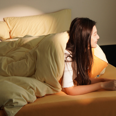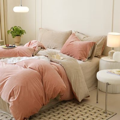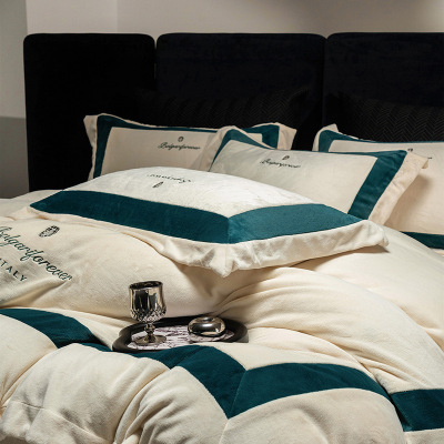 高级撞色牛奶绒四件套捏捏绒防静电A类保暖秋冬季轻奢床品床笠