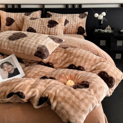 高档轻奢A类立体花牛奶绒四件套冬季保暖不静电加厚床品