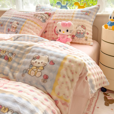秋冬季可爱牛奶绒泡泡绒床上四件套加厚被套单件宿舍床单三件套