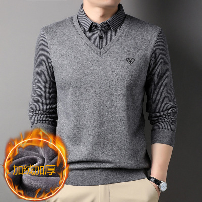 秋冬季新款长袖T恤加绒保暖潮流男士时尚舒适休闲假两件